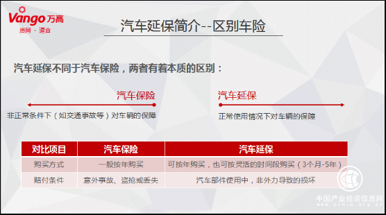 至于汽车延保跟车险的区别,刘德春说,可以从保障内容来看,即车险是对车辆非正常条件下(如交通事故等)对车辆的保障,可看作是汽车的意外险;而延保是车辆在正常使用情况下对车辆的保障,可看作是汽车的健康险。