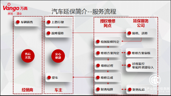 当车辆故障时,车主仅需电话报修即可,延保公司将负责接修和送修,随后授权的维修网点就会对车辆进行救援并进行故障的检测,提供维修方案,延保公司的专业技师会对检测和维修方案进行审核,通过之后维修网点进行车辆维修。延保公司会对维修的过程进行监控,包括视频图片等等进行存档。维修完成之后,通知车主提车,在提车时也不需要车主垫付维修费用。费用则由延保公司和维修网点来进行单独结算。