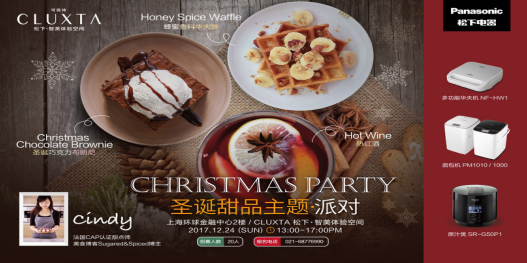 除了面包机焕新计划,松下在12月24日圣诞期间,还将邀请20位烘焙爱好者相聚上海环球金融中心CLUXTA,共同开启趣享烘焙的圣诞派对!CLUXTA松下智美体验空间,基于松下“令人憧憬的生活”的空间提案。CLUXTA咖啡区域,以松下“轻厨房”概念提案,展示最新松下智能厨电商品,定期还会举办料理派对活动,这次Cindy老师也会在现场和大家一起使用松下最新的厨房调理电器制作美妙的圣诞甜品!就让我们一起期待吧!