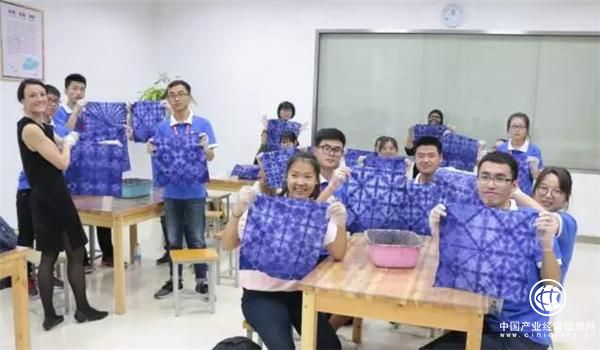随后,“彩虹桥”中美学生又学习了扎染技术。扎染是我国古代印染技术的一个巨大成就,是国人为之骄傲的非物质文化遗产。在老师的悉心指导下,中美大学生很快就了解到了其中的真谛,纷纷做出了完美的扎染作品。