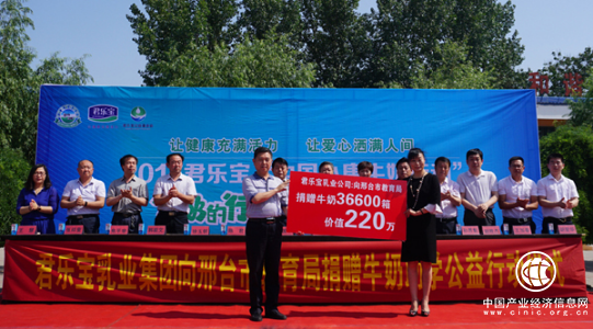 今年2月,农业部联合中国奶业协会启动的“中国小康牛奶行动”上,君乐宝积极响应并向贫困地区学生捐赠20万提、总价值1200万元的优质牛奶产品,惠及河北、河南、青海、北京等多个省市近百所学校数万名学生。在小康牛奶行动的实施过程中,君乐宝首创“牛奶+运动”的模式,将公益捐赠与徒步行走结合在一起,在奉献爱心的同时,倡导积极健康的生活方式,传递公益爱心正能量,这一创新模式得到了农业部、中国奶业协会以及社会各界的高度认可。