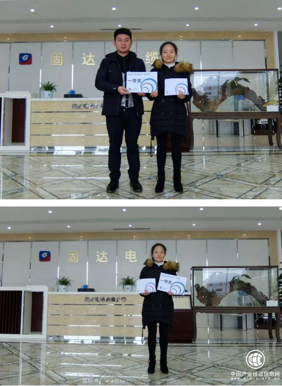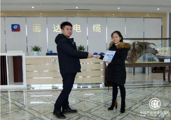 2018年1月3日,贵州固达电缆有限公司广告语征集活动在固达本部举行了隆重的颁奖仪式,公司兴义区域经理黄韬为获得第一名的刘婷婷女士进行颁奖。