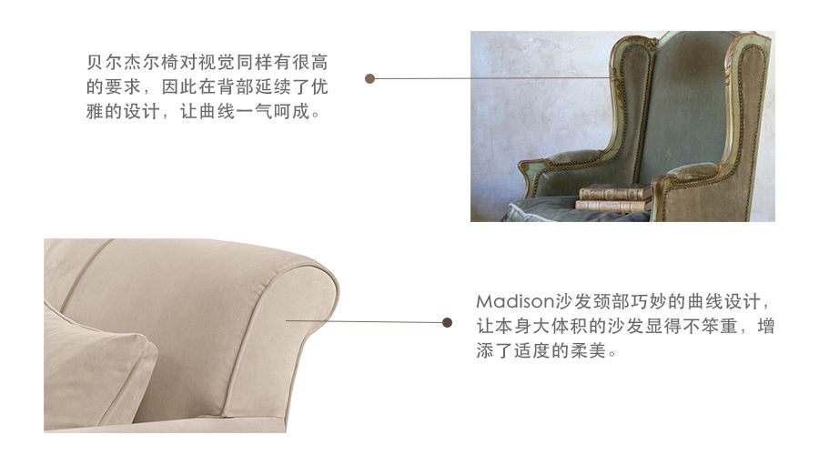 将贝尔杰尔椅的质感与舒适从路易十五时代带回当代美式生活,Madison Sofa将优雅延续。