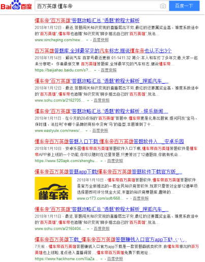 据实时数据显示,西瓜视频《百万英雄》游戏之中,只要是出现在题目中,或者是答案选项中的关键词,几乎是同一时间,便能高居各大搜索引擎前列。事实上,在《百万英雄》游戏中出现的一切题目与答案,搜索率都会瞬间暴增,名气大涨!
