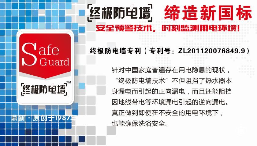 电热水器“吃人”的新闻隔三差五被媒体曝光,明明热水器装有漏电保护,事故却频发。其实仅仅能阻挡自身漏电的热水器依旧存在安全隐患,鼎新电热水器加载了自主专利的“终极防电墙”,在确保沐浴安全的同时,时刻检测家中的用电环境,阻挡环境漏电引发的水带电,不再让悲剧发生。
