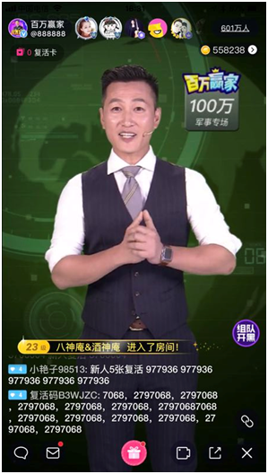 在当日的军武科技专场中,共有601万粉丝在线与主考官吴鑫磊互动参加直播问答。此次与花椒《百万赢家》合作携手打造的直播答题+跨界营销案例,也为军事题材商业化提供了更多新玩法,同时也证明花椒打造的“直播平台+知识问答+知识变现+品牌植入”的创新模式是可持续发展的。相信花椒今后必定能开发出直播越来越多的商业化可能性,一次次引领直播与商业品牌合作的新浪潮。