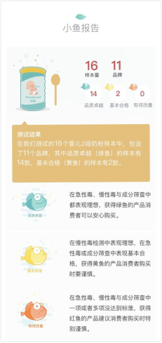 检测结果显示,14款奶粉为代表“品质卓越”的“绿鱼”,2款奶粉为代表“基本合格”的“黄鱼”。君乐宝在三个方面的检查中全都表现优秀,获得了代表“品质卓越”的“绿鱼”最高评级。
