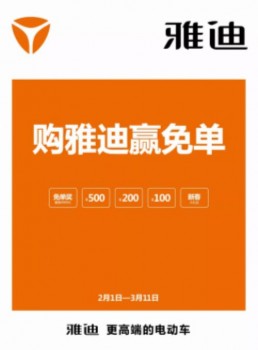 另外,线下活动同样精彩,在活动期间,雅迪电动车将在全国范围内同步推出“购雅迪、赢免单”活动。在全国雅迪专卖店,无论是选购新车,还是旧车换购高端车,都可以参与抽奖。活动期间,消费者只要购车就能参与中奖率100%的抽奖活动,幸运大奖为返回全部购车款(最高返4999元)。