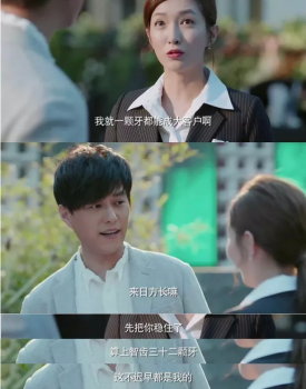 剧中的洗脑爱情金句大多都与护齿相关,比如第一集的台词“男人与女人就像是人的上牙和下牙,婚姻就像矫正器”。这些护齿加爱情的口播营造出“三句不离本行”的喜感,有效凸显人物性格,传递给观众一个信息:原来,这个世界上,不能自拔的除了牙齿,还有爱情。