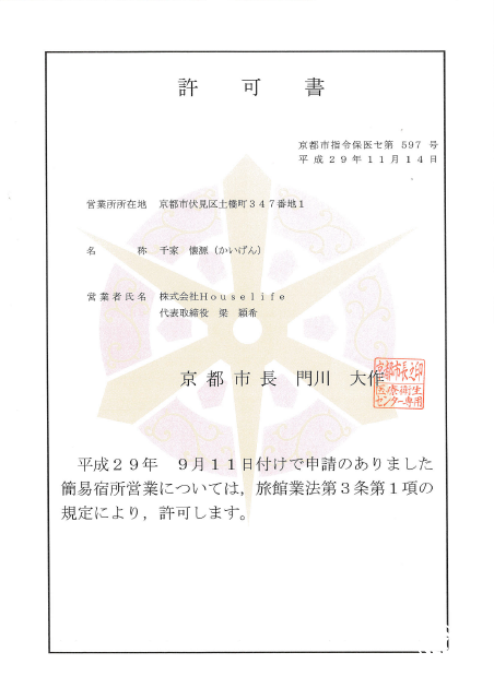千家CHIKA日本民宿,是日本Houselife株式会社旗下高端线的日本民宿品牌,目前拥有特色主题美宿10栋,所有服务均为自营,以保证服务品质。并且每栋民宿都通过了日本政府的严格审核流程,获颁合法营业许可证。