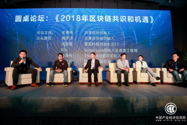 在会议当天的圆桌论坛环节,由共享财经创始人史青伟主持,云象区块链创始人黄步添、雷盈科技创始人兼CEO沈陶磊、Gödel Labs创始人及首席工程师Roy、The Cabin资本发起人黄海光(比特财神) 、融都科技副总裁胡佳骏还针对《2018年区块链共识和机遇》的主题展开了一场精彩的对话。