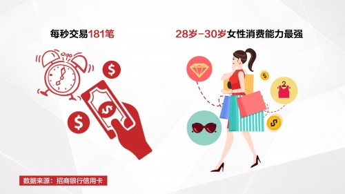 分析了女性的购买力、消费行为及女性消费新趋势。该报告显示,招行信用卡女性持卡用户在3月7日——3月8日境内消费高达90.3亿元,较去年同比增长51%。其中,女神节无卡支付占比28%。