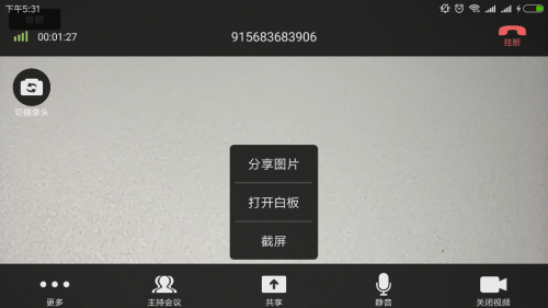 ● 共享:点击开始发起内容共享(分享图片、打开白板、截屏)