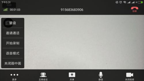 ● 挂断:退出当前会议