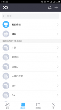 APP底部导航栏上的第二个图标为“通讯录”,它用于显示用户所属的企业通讯录、用户的小鱼列表以及未来将支持的本地通讯录。同时,“我的小鱼”入口也在这个页面中,用户可以从这里点击进入,呼叫或管理自己的小鱼。