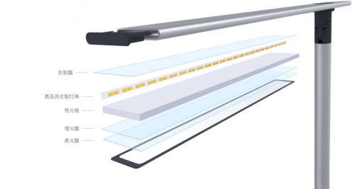 1、选择配置发光面积均匀、光照柔和的面光源。与点光源不同,面光源则是由若干颗LED贴片灯珠共同组成,并隐藏于在台灯侧面排列,在导光板和扩散板、反光膜的折射和反射下,侧面灯珠的光改变原有的发光角度,在共同导向下从同一方向均匀射出。因此,面光源具有发光更均匀,更柔和,人眼接受度更高,无眩光等特点,相对而言,则有利于我们长期有效地保护视力。