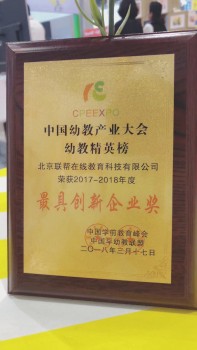 联帮在线教育荣获“中国幼教产业大会幼教精英榜·最具创新企业奖”