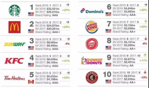 (“2018全球最有价值25个餐厅品牌”排行榜Top10)
