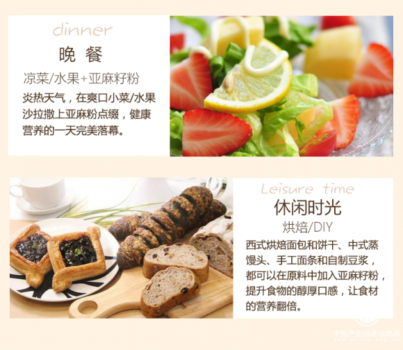 如果你是上班一族,早餐和下午茶都可以选择亚麻籽粉冲调,如果你爱吃轻食,那就更好了,在轻食上撒上亚麻籽粉,口味和营养更加提升一层。