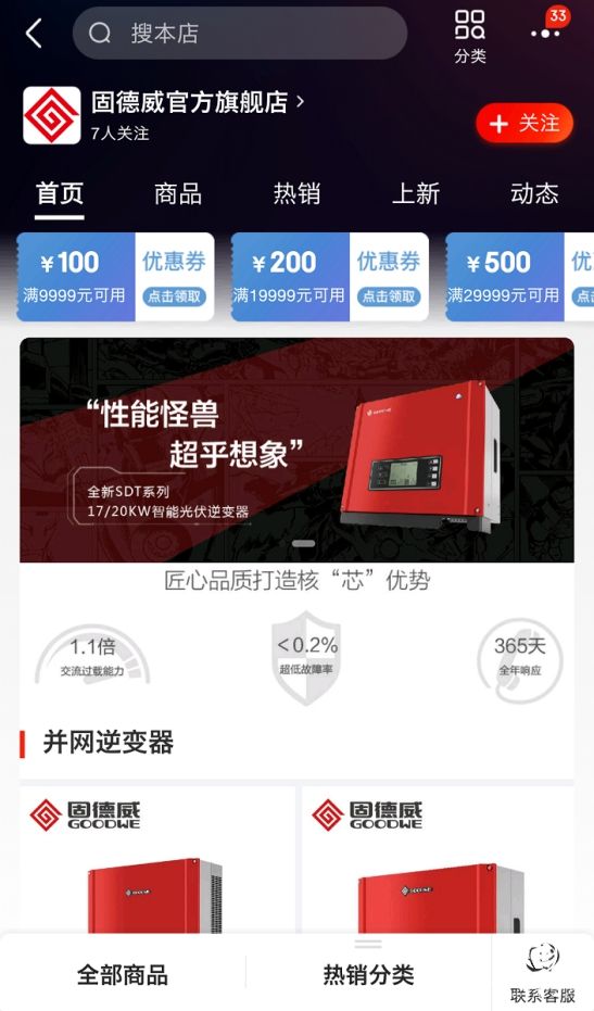 固德威成功入驻京东,率先开拓线上渠道,拉近了品牌与终端用户的距离。相信通过京东的品牌影响力、强大的线上线下资源优势,能够将光伏产品的线上销售、线下安装、运维、物流配送一体化体系彻底打通,有效拓宽固德威光伏逆变器的销售渠道和老百姓获取产品信息的途径,从而给光伏行业的发展注入新的活力。