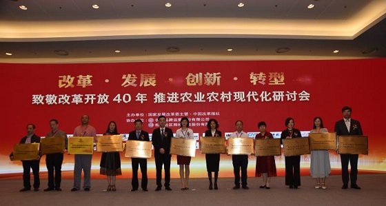 9月8日, 由中国改革报社主办,农创品牌运营股份有限公司、和睦社区网络科技股份有限公司协办的“致敬改革开放40年,推进农业农村现代化”研讨会在北京国家会议中心顺利举办。中国改革报社社长宋葛龙,副社长杨禹,国家发展改革委城市和小城镇发展研究中心政策研究院院长、研究员范毅,宁夏回族自治区农牧厅党组成员兼厅长助理邓先德等嘉宾以及农创品牌运营公司各省市公司代表和首都媒体记者共300多人出席了本次研讨会。