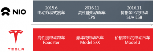通过产品战略,会发现蔚来与特斯拉的做法类似,都选择从最高性能跑车做起,然后往下做亲民车型。有特斯拉作为范例,这是国内市场看好蔚来成为国内高端电动车领头羊的重要原因。