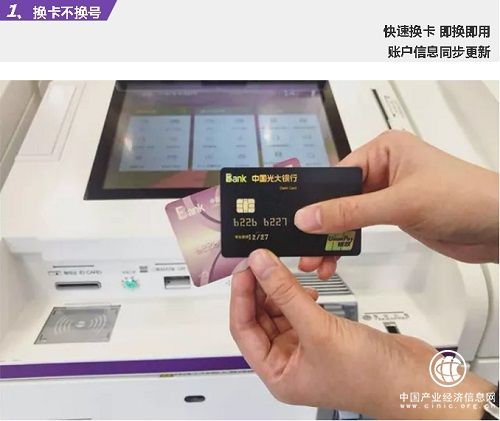 一是支持换卡不换号,实时领新卡。该项功能是光大银行推出的创新型增值服务,为业内首创。用户在遇到卡丢了、卡坏了、磁条卡升级等情况后,可在保留原卡号的前提下,实时换领新卡,一步到位。原卡所有绑定及签约信息能够自动同步,免除了用户换卡后更新签约信息的烦恼,极大的减少了用户等待换卡的时间和多次往返网点的麻烦。