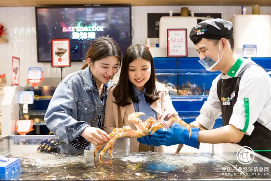 全球海鲜盛宴实现了精品食材和特色餐饮的完美结合,既可将鲜活海鲜外带,也可加工后进行堂食。“地球港”海鲜的新鲜程度、品类、食材数量一般超市不可比拟,俄罗斯帝王蟹、加拿大波士顿龙虾、英国面包蟹、澳洲鲍鱼,即捞即做,口味自选,稍坐片刻后一盘鲜香四溢的海鲜大餐就呈现在顾客面前。