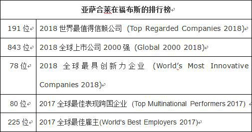 近日,福布斯公布2018世界最值得信赖2000强公司榜(Forbes’ Global 2000: Best Regarded Companies),全球开门解决方案的领导者──亚萨合莱集团凭借着优质的产品,良好的企业社会行为和出色的雇主形象,全球排名191位。这也是继今年荣获福布斯全球最具创新力企业后再次荣登排行榜。
