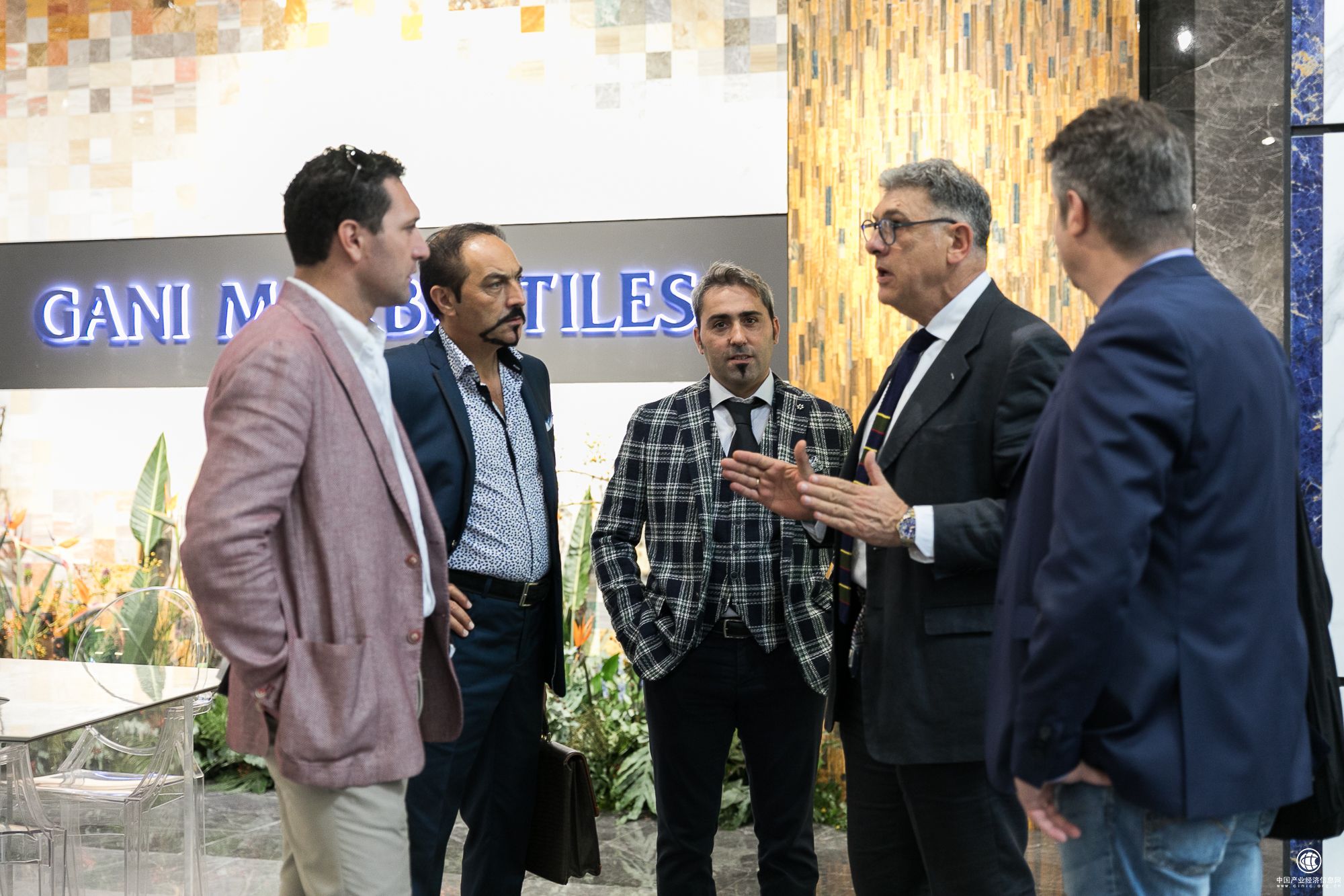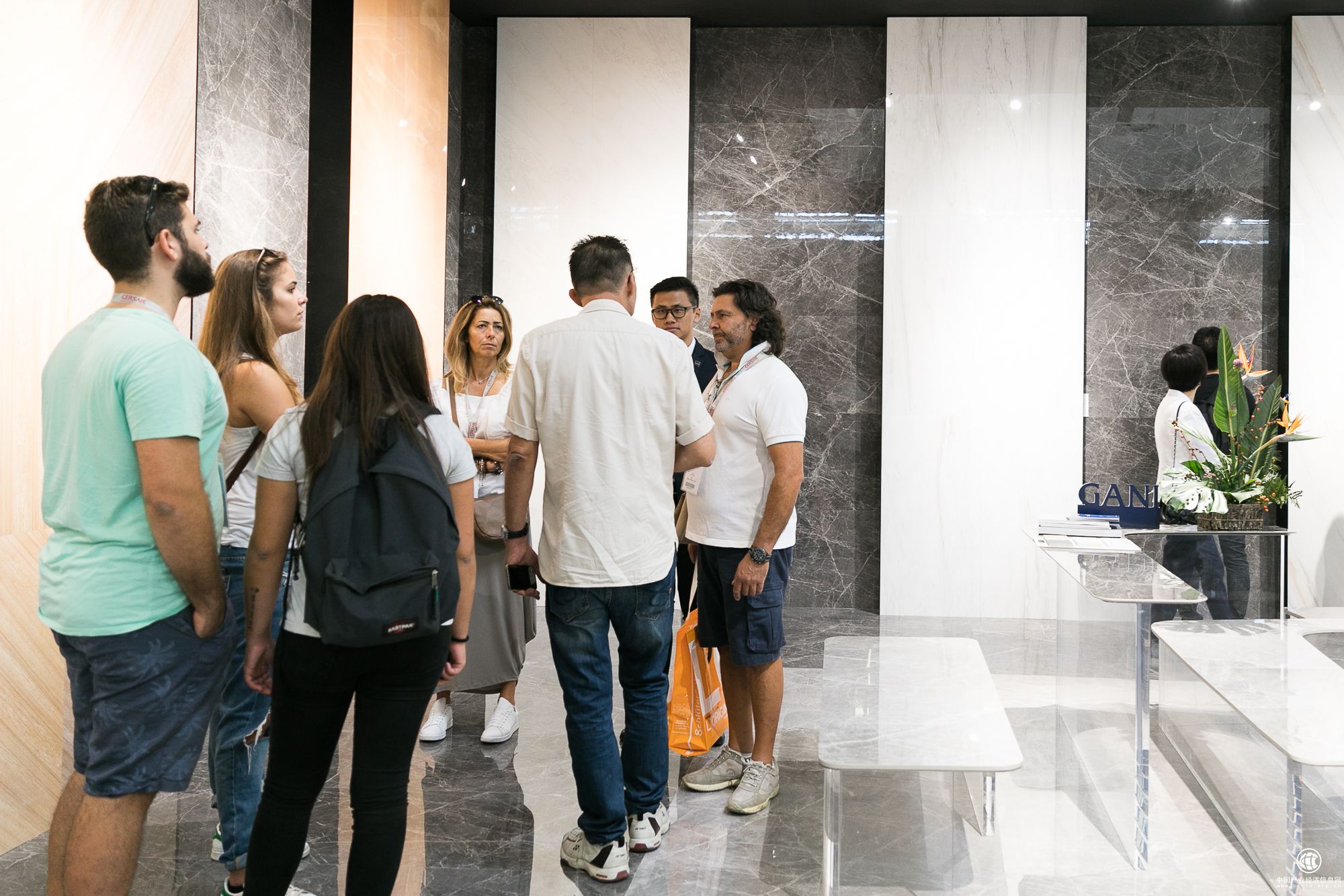 ▲简一大理石瓷砖展位上外宾驻足停留
