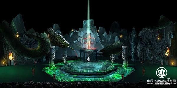 舞台设置在一个可以容纳1000人的户外山体剧场内,高达20米的山体造景,威严高耸,气势磅礴,既是舞台主体形象,也是变化万千的多媒体视觉载体。沉浸式的创意视觉设计让观众感受到这浩瀚宇宙之象。