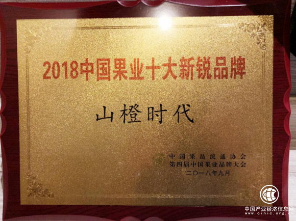 山橙时代“2018中国果业十大新锐品牌”奖牌