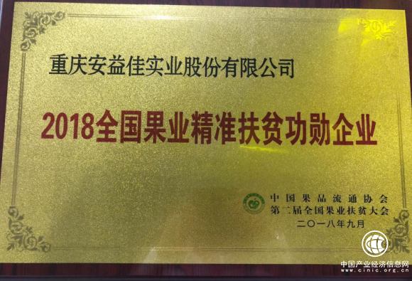 山橙时代“2018中国果业精准扶贫功勋企业”奖牌