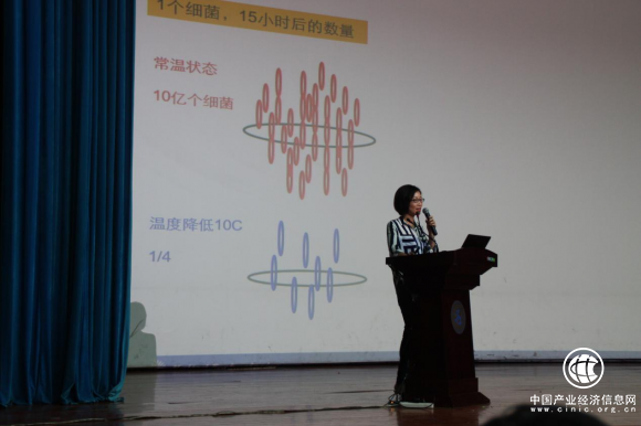 第二位登台分享的是开利运输冷冻(中国) 市场部经理陈易明女士,主要围绕“食品安全与冷链物流”为主题展开。首先对冷链物流概念以及国内冷链物流现状进行介绍,其中深入人心的内容是:在中国,23%的食品浪费源于冷链缺失,让在座同学们认识到冷链物流的重要意义。然后,对开利集团进行介绍并强调企业看中人才的首要因素是职业素养与职业道德。最后,着重介绍了开利一代经典机型----大凤凰机组X4系列,大凤凰机组进入中国20多年来,不断自我完善和创新,得到市场的一致认可。