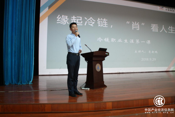 接下来,西安佳思特供应链管理有限公司总经理肖新鹏进行主题“缘起冷链,笑(肖)看人生“的分享,肖总作为本土企业领导者详细介绍了陕西冷链物流的现状及发展方向,最后重点帮助同学们分析了冷链物流企业对于人才的要求,对大学生在校期间应做的学习和准备做了指导意见。