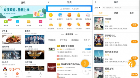 第一:新增“发现”板块。一站式解决用户买电影票、外卖点餐、手机充值等生活服务。