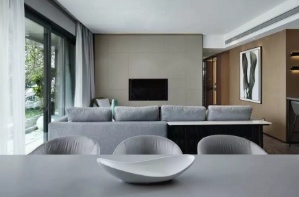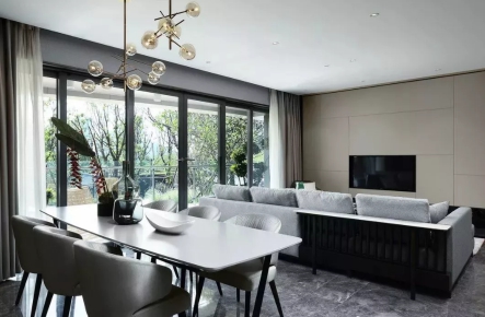 从客厅到餐厅,设计师用“灰”坐稳中庸,再将其他色彩有度的展开,表现了张与弛的分寸感。