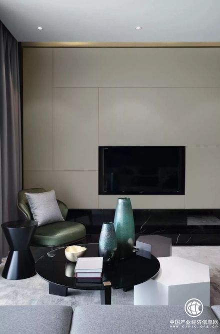 茶几上的一组玻璃器皿,通透、性感而活波,造型经典,色彩含蓄又张扬,点缀其中有种心猿意马,方落凡尘之感,让人眼前一亮。