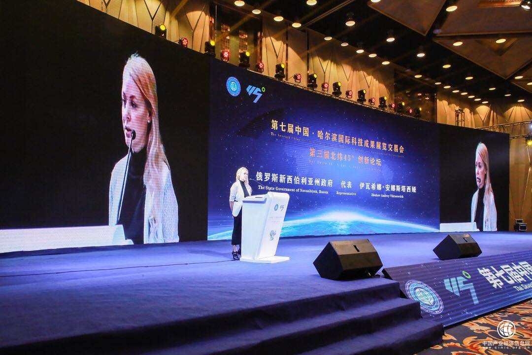 随后,由哈尔滨市科学技术局和哈尔滨工程大学联合承办的第三届北纬45°创新论坛正式启幕。围绕北纬45°国家间的科技合作与寒地技术开发、高科技产业和园区间的协同创新发展等议题,哈尔滨工程大学、国际经合组织—盖马、哈尔滨工业大学、白俄罗斯国家科学院、黑龙江省农业科学院、韩国中小企业革新协会、俄罗斯科学院乌拉尔分院等创新主体的代表分别做了主旨演讲,推介了各自创新资源优势,并与参会嘉宾一道,共同探讨开启高寒地带技术与产业创新合作的新模式新方法,共同探索科技创新助力北纬45°沿线国家和地区科技合作向纵深发展的新理念新路径。