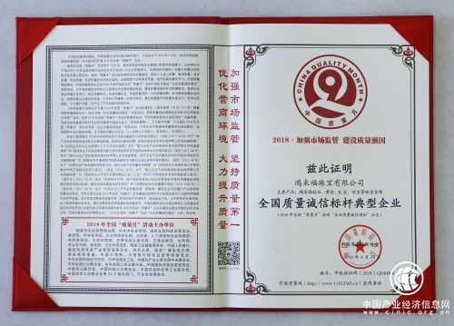 2018年8月,经由国家市场监督管理总局、中国质量检验协会的全面资质审查审批,鸿来福珠宝凭借综合品质实力和市场品牌影响力斩获“全国珠宝行业质量领先品牌”殊荣。9月,凭借自身良好的信用体系建设、诚信典范形象,被授予“全国质量诚信标杆典型企业”荣誉证书。