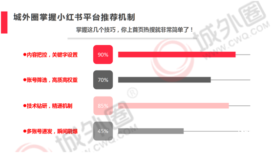 深谙小红书推广传播策略的城外圈营销经理表示:品牌推广目的和用户消费需求是小红书推广的双重驱动力,不同于以往的营销策略,城外圈从技术到数据到执行的综合能力,帮助有小红书推广需求的品牌连接用户,通过有策略性的小红书笔记打造小红书刷屏效应,将内容和用户关联的核心点,从品牌、内容、产品和营销四个层面激发用户下单购买行为。