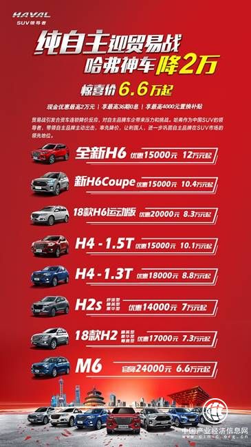 自上市以来,哈弗一向强调,要向市场提供“中国人买得起的SUV”。进入2018下半年,贸易战让国际经济形势变得微妙,不少持币待购的用户进入观望,哈弗迅速调整销售政策,9月开启为期2个月的“纯自主迎贸易战,哈弗神车降2万”活动,以更优惠的价格,打消用户的消费犹疑。