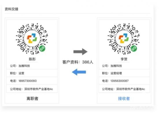 而有了加推人工智能名片,管理层可以将要离职的销售手里的客户对接到其他销售手里,避免了销售离职的时候新客户的流失和没人对接老客户的尴尬。