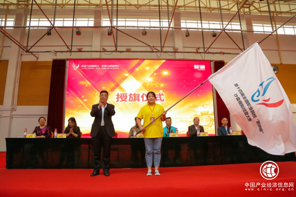 随后,山东商业职业技术学院党委书记马广水先生向参赛代表授旗。大赛裁判长、指导教师代表、参赛选手代表分别进行宣誓。
