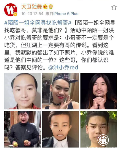 原来,昨日,苏宁超市发布了一则#陌陌一姐全网寻找吃蟹哥#的“寻人启事”,苏宁超市携手陌陌一姐全网寻找吃蟹哥,并将与洪小乔在10月25日晚8点的直播中亲密嗨吃大闸蟹!!!!!