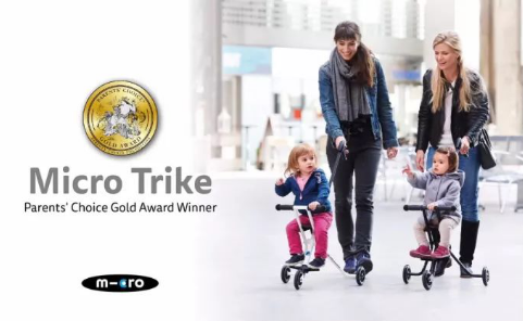 micro trike弛克手推车荣获“父母首选大奖”2017年度金奖!在2017年的玩具类目中,全球只有12件产品获金奖,micro出产的驰克手推车就是其中之一。