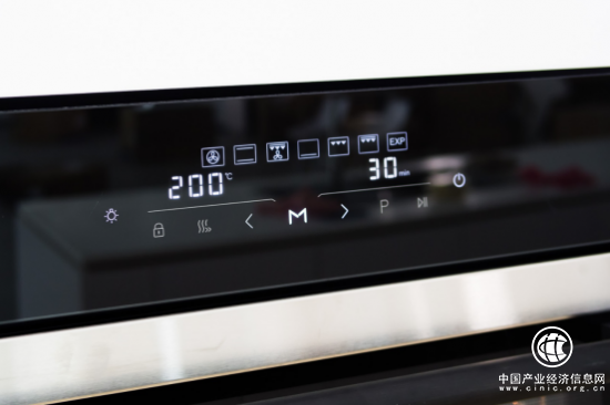 跟前几代烤箱相比,老板电器对烤箱R070A的触屏功能区进行了重新的设计。居中位置的“M”键异常显眼,其实这就是切换键。通过启动“M键”,在左右方向键的配合下,用户可以根据烘烤需求分别选定模式、调节温度、调节时间。功能区上还有内置菜单“P”键,单独对应烘焙模式。