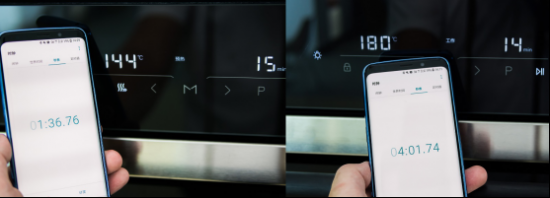 首先将烤箱预热到正常的烘焙温度。关上箱门,启动快速预热键,同时打开手机里的计时器,静等温度上升。经过测试,老板烤箱R070A加热至180℃,只用了短短4分钟的时间,这对40L容量的烤箱来说,已经是非常快的一个速度了。