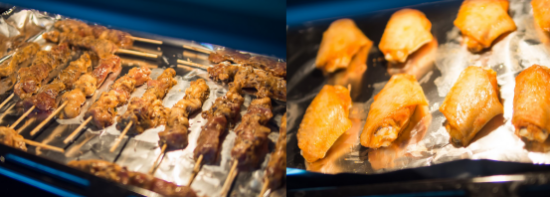 一般来说,两次烘烤已经很好地证明了老板烤箱R070A非同一般的性能,而关于产品的核心技术我们也有足够的信心。更让我们惊喜的是,该款烤箱还搭配了上下独立控温技术,温差高达30℃,实现了烘焙区的独立控制。对此,小编用烤鸡翅和肉串进行了测试。