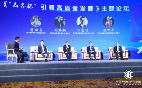 (老板电器总裁任富佳(右二)与多位行业大咖共话“品字标”)